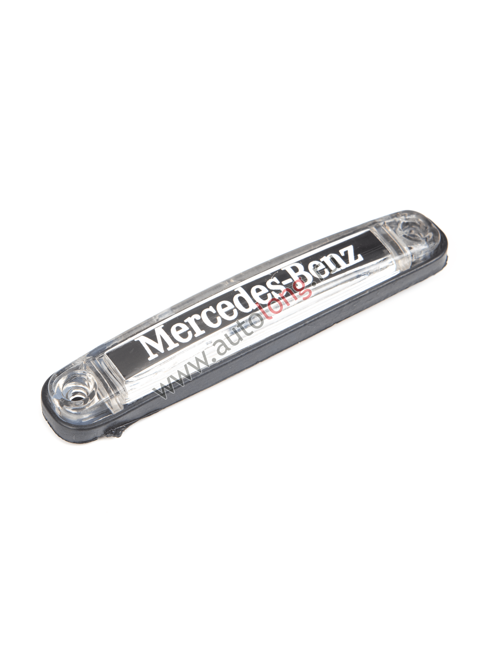 Передний белый светодиодный габаритный огонь на грузовик Mercedes-Benz 24В SLIM. Имеет стильный вид со светящейся надписью и тонким корпусом. Крепление к кузову производится на 2 винта или болта, питание подключается от бортовой сети.