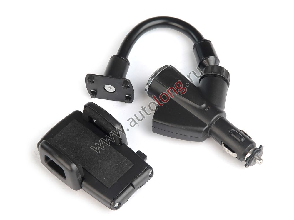 Автомобильный держатель телефона в прикуриватель с двумя USB разъемами и гнездом прикуривателя.