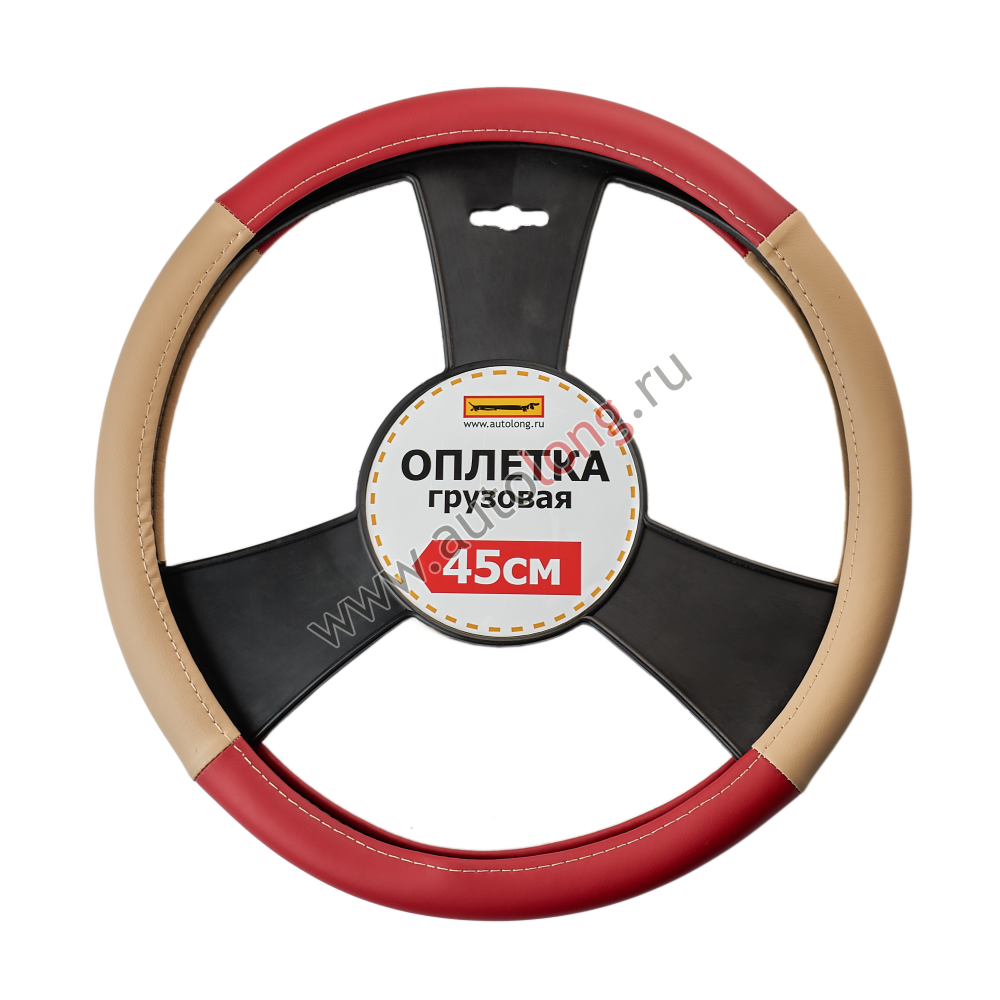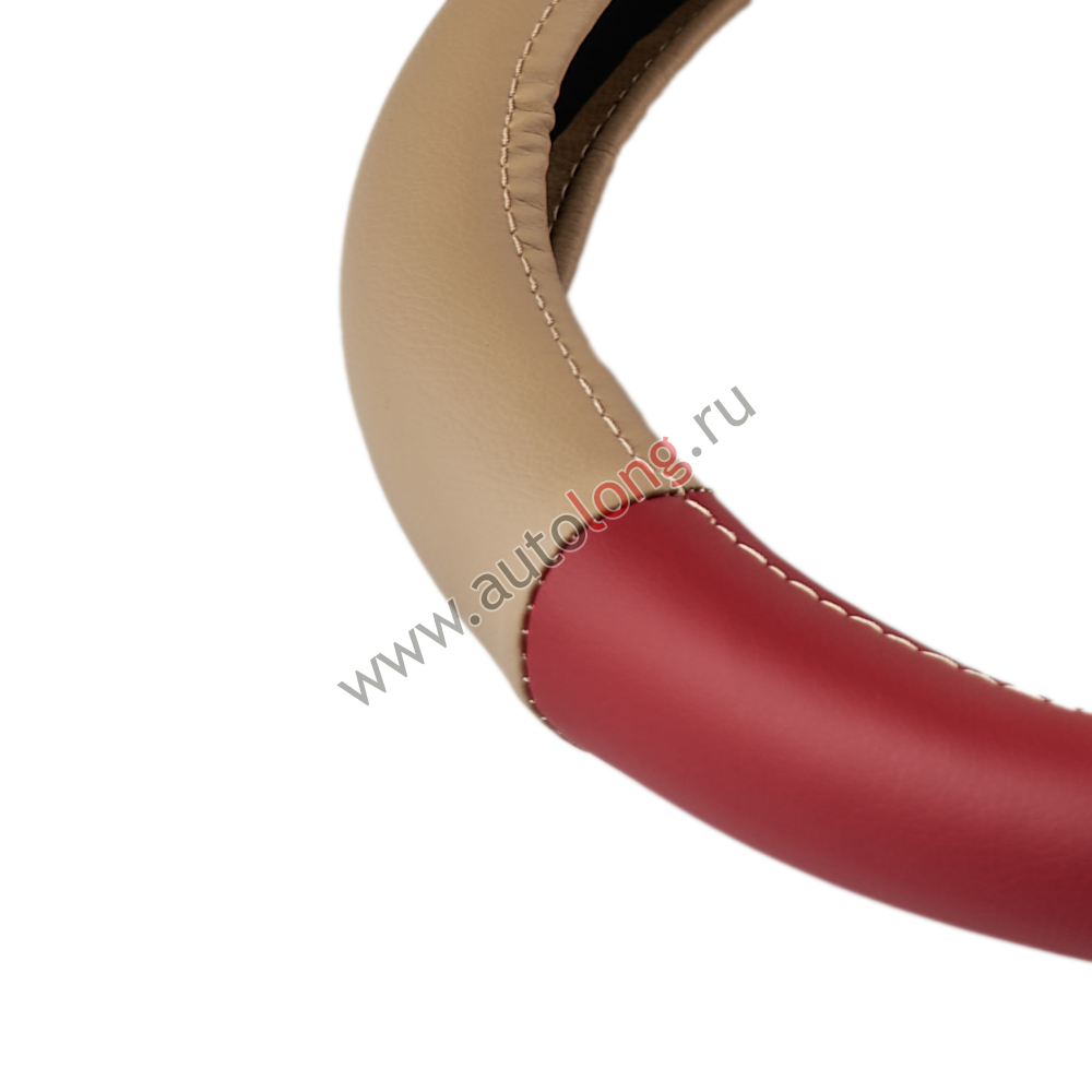 Оплетка на руль автомобиля 45 см экокожа (красно-бежевая)