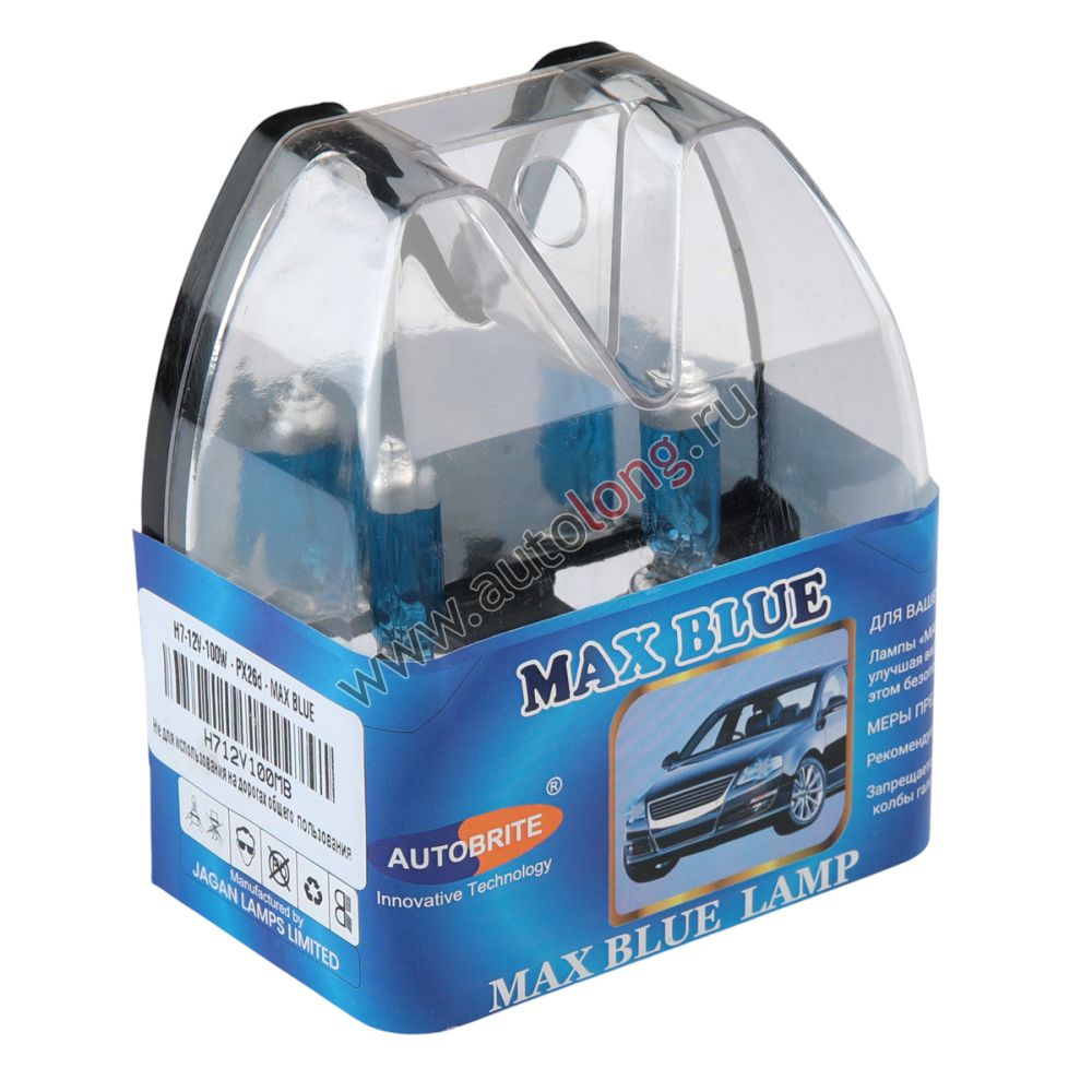 Галогенная автомобильная лампа 12В Н7 100W-PX26d-MAX BLUE "AUTOBRITE".