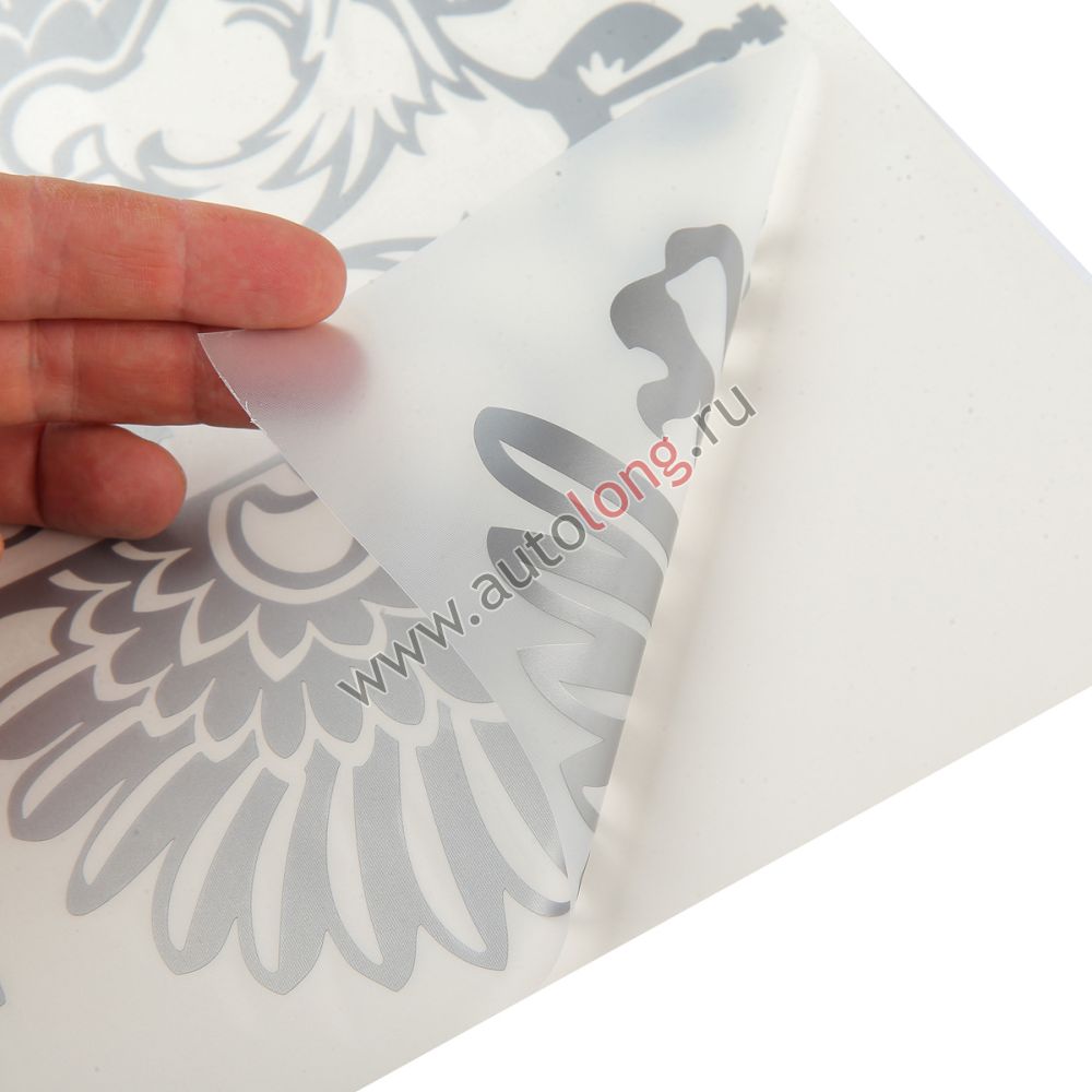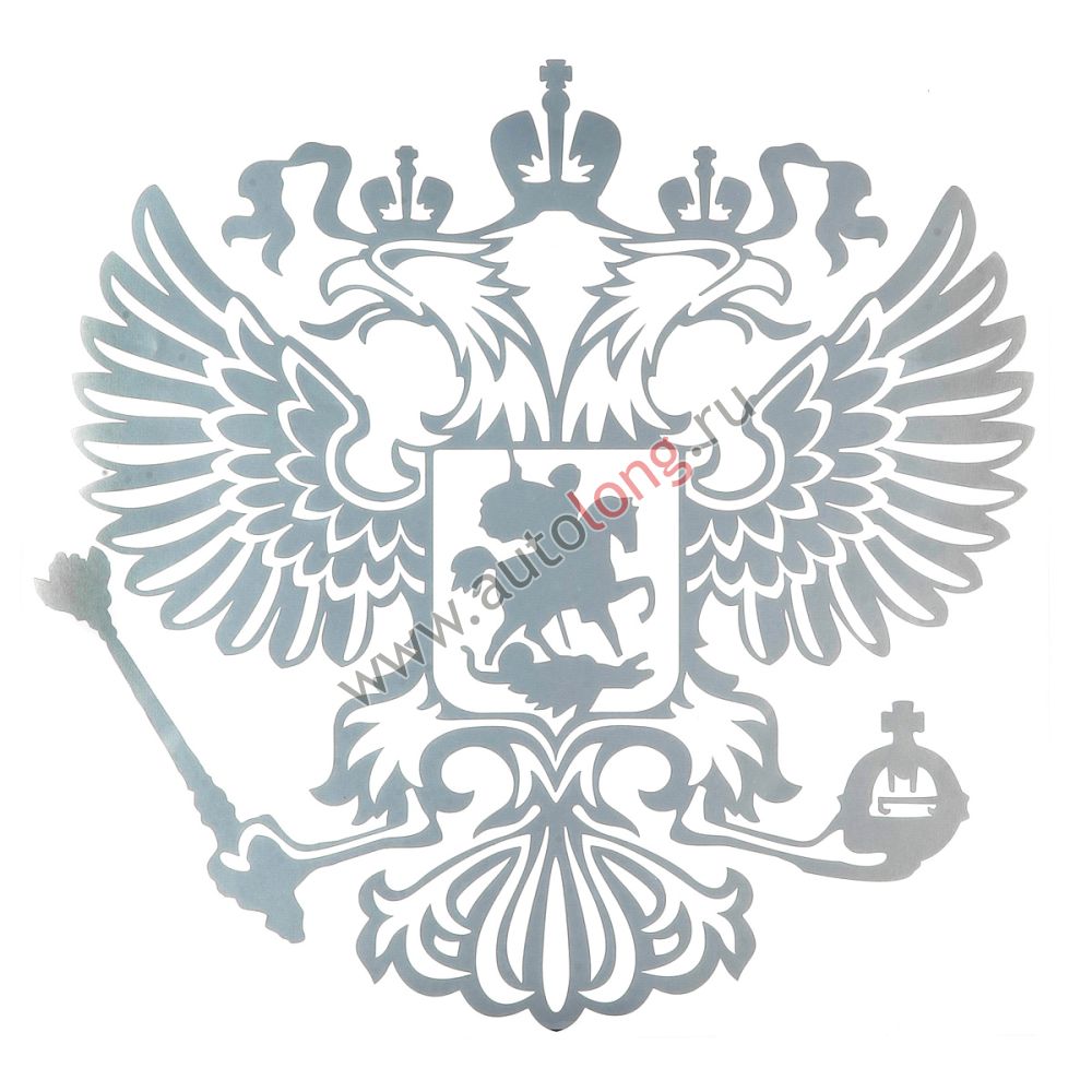 Наклейка автомобильная "Герб России" наружная вырезанная (цвет серебро) 50х50 см