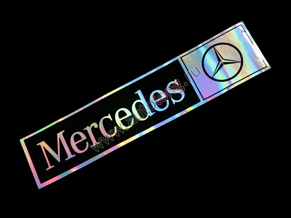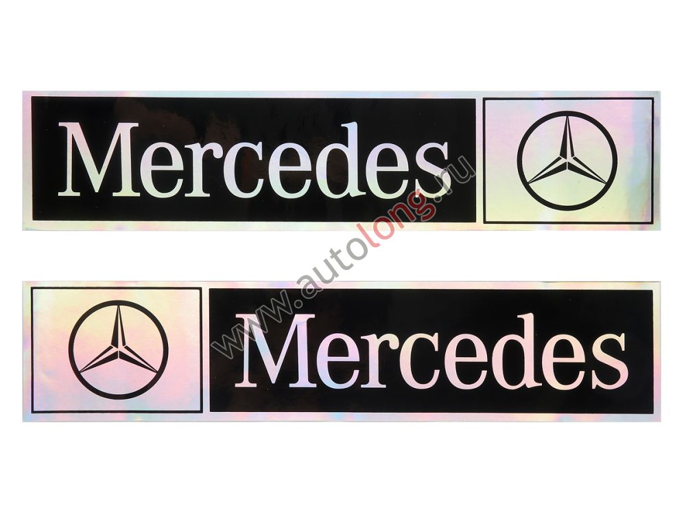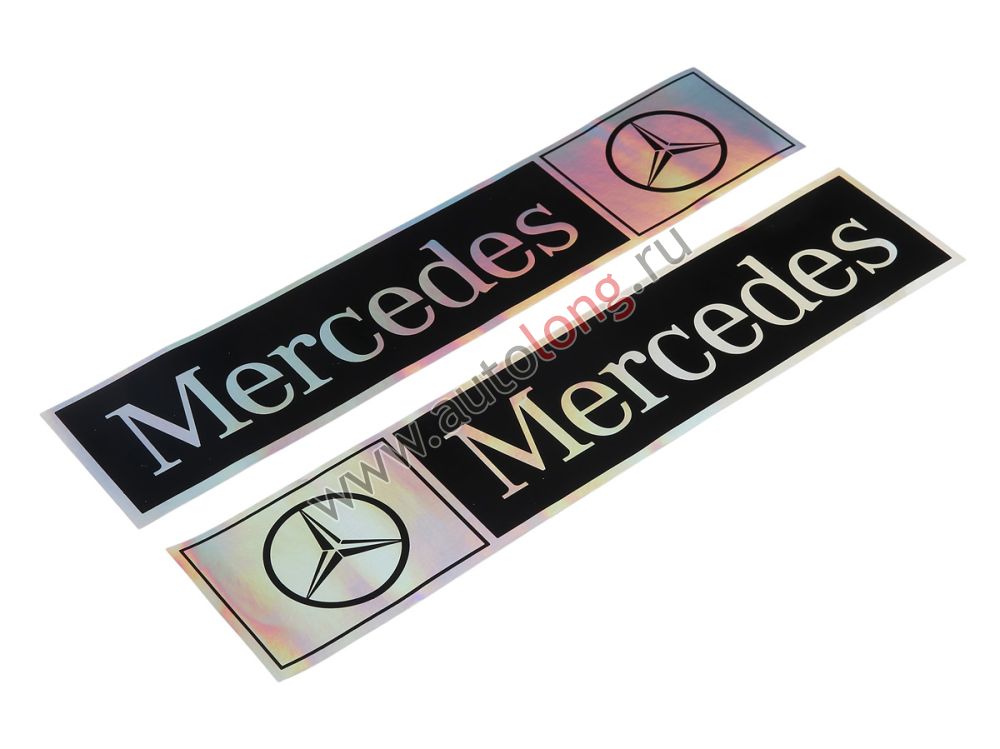Голографические автомобильные наклейки с эмблемой MERCEDES, комплект на 2 стороны (правую и левую), размеры 9*41 см.